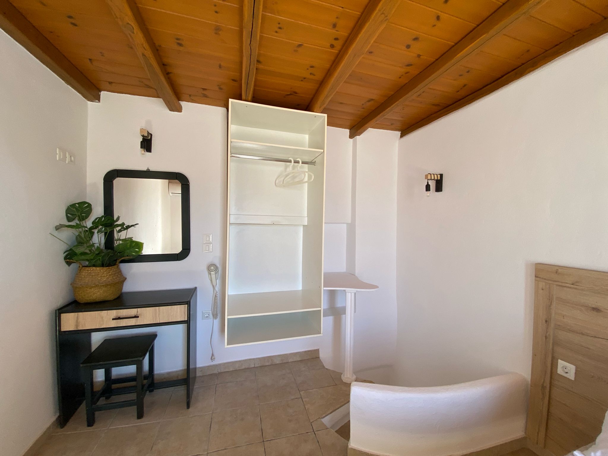 Stylish Cycladic duplex apartment for up to 4 guests in the heart of Mykonos Town. Perfect location for nightlife, clubs, bars and shopping, just steps from the main pedestrian area. Features private terrace, rooftop views, double bedroom, sofa bed, kitchenette, A/C, TV and safe. Walking distance to everything – Megali Ammos Beach 500m, Ornos Beach 3 km.