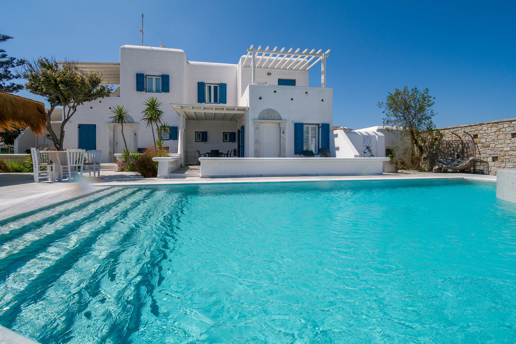 We welcome you to the family - owned and run ''Gelsomino House’’. The residence is a traditional Mykonian building located 2 minutes from Ornos Beach on Korfos Bay, 2km from Mykonos Town. The area enjoys a 20-hour service to Mykonos Town or we can provide you with choices of renting a car or a bike. Just opposite the apartments one can easily access to super market, pharmacy, bakery, cafeteria with internet, Italian and Greek restaurants.