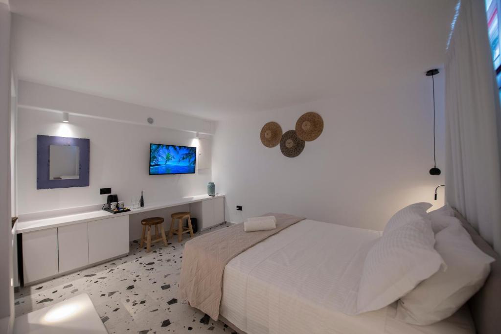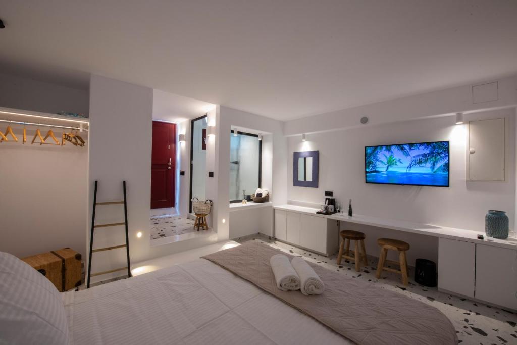 These panoramic suites offer a direct view of the iconic Mykonos Windmills, one of the main attractions of the island. Located in Little Venice, in the heart of Mykonos Town, they are ideal for guests who wish to stay in the most vibrant and central area of Mykonos. Each suite accommodates up to 2 guests and is equipped with a double bed, Wi-Fi, a private bathroom with shower, and concierge service, offering comfort and convenience for an unforgettable stay. The suites are open from April to October.